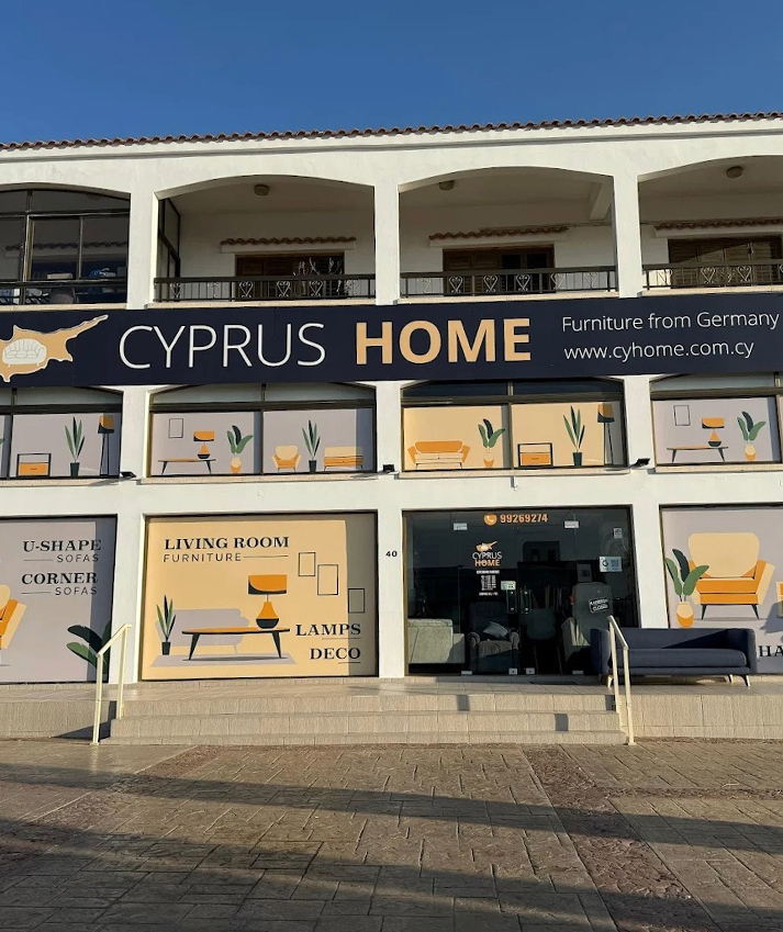 Our showroom is located at 40 Mesogi Avenue, Paphos. Here you can see and feel the sofas, beds, armchairs, poufs, mattress and living room furniture. Our professional team will gladly advise you.